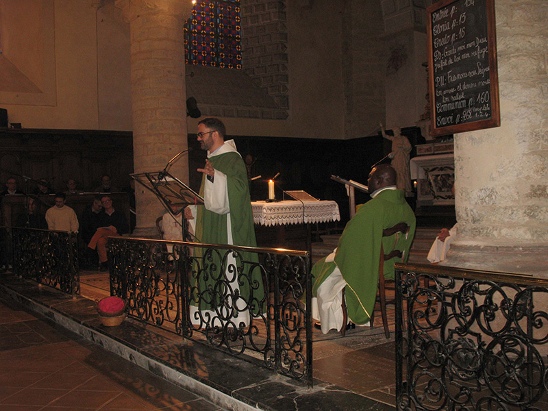 A l’issue de cet exposé, s’en suivit la messe au cours de laquelle le vicaire épiscopal, Loïc Lagadec, remettait symboliquement la « clé de la Paroisse St Martin de l’Isle-Crémieu » au Père Simon, signifiant dans son homélie « combien c’est un bonheur durable et profond de servir le Seigneur », insistant sur l’importance des fraternités locales et l’urgence de sortir de « la morosité catholique ».