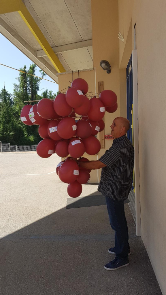 Ce dimanche 1er juillet à Siccieu, le raisin a mûri avant l’heure et les enfants ont réalisé une belle grappe d’amour, sur chaque grain était noté les fruits qu’ils voulaient produire !